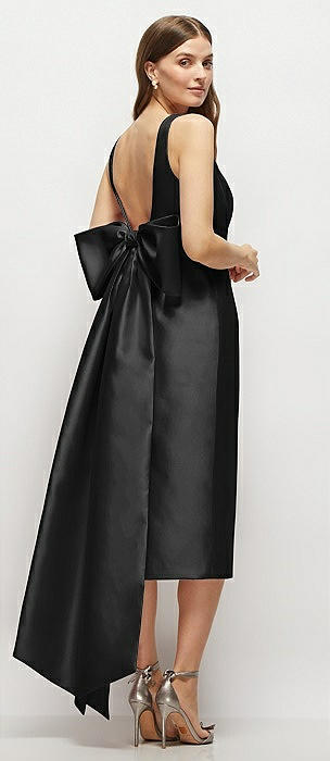 Strapless Cuff Satin Midi Dress with Column Skirt & Back Bow in black