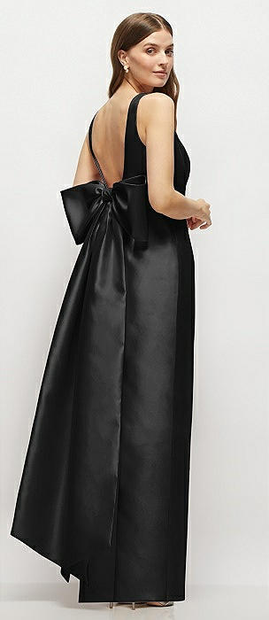 Sleeveless Satin Trumpet Gown with Bow at Open-Back in black