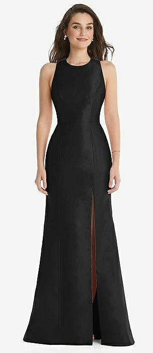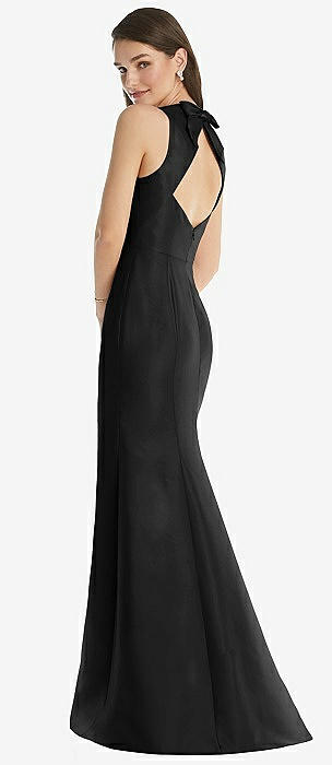 Sleeveless Satin Trumpet Gown with Bow at Open-Back in black