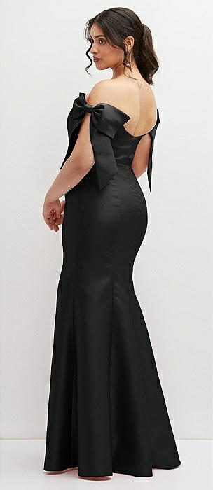 Off-the-Shoulder Bow Satin Corset Dress with Fit and Flare Skirt in black