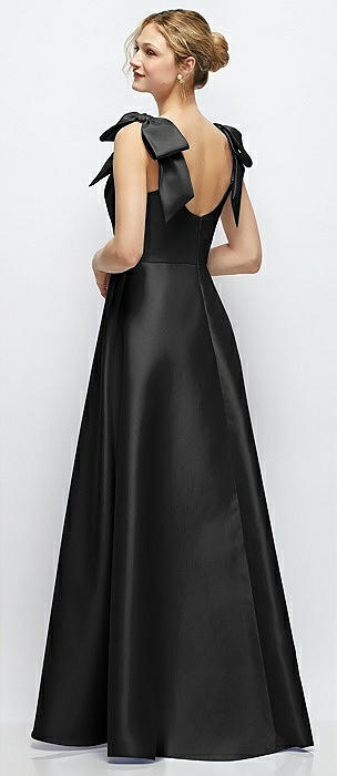 Deep V-Neck Satin Ball Gown with Shoulder Bows in black