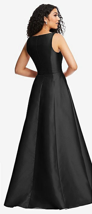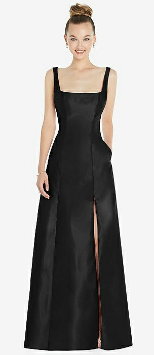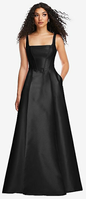 Sleeveless Square-Neck Princess Line Gown with Pockets in black
