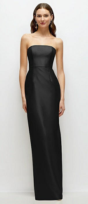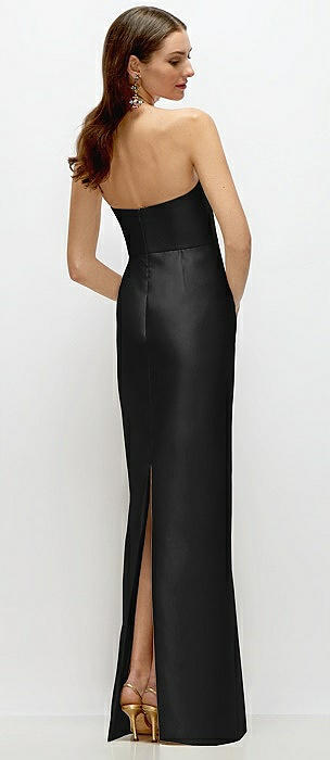 Strapless Satin Column Dress with Removeable Watteau Train in black
