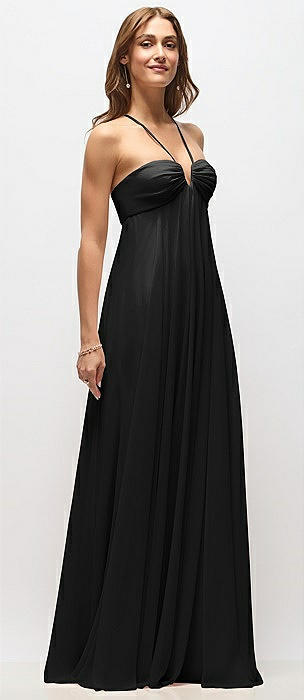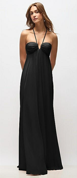 Empire Waist Chiffon Halter Maxi Dress with Convertible Spaghetti Straps in black