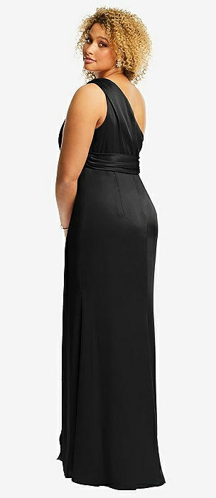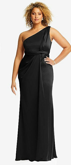One-Shoulder Draped Twist Empire Waist Trumpet Gown in black