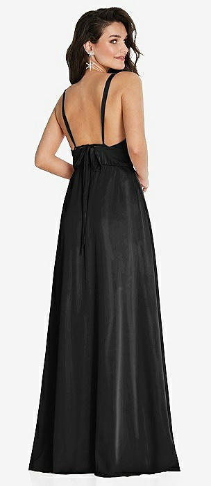 Tie-Back Cutout Trumpet Gown with Front Slit in black
