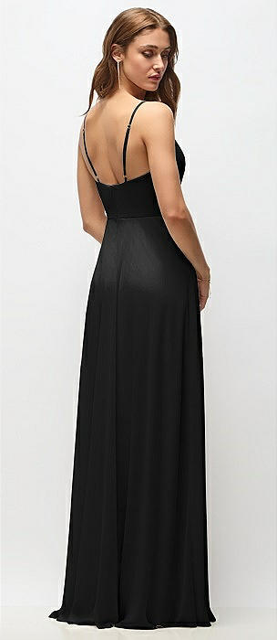 Wrap Bodice Chiffon Maxi Dress with Adjustable Spaghetti Straps in black