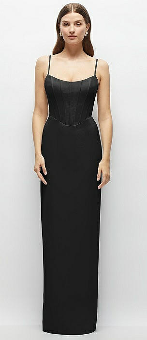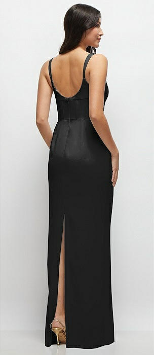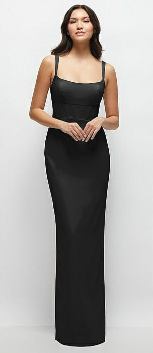Corset-Style Crepe Column Maxi Dress with Adjustable Straps in black