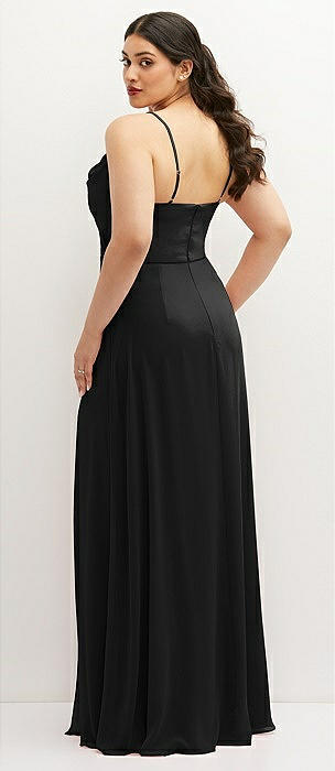 Soft Cowl-Neck A-Line Maxi Dress with Adjustable Straps in black
