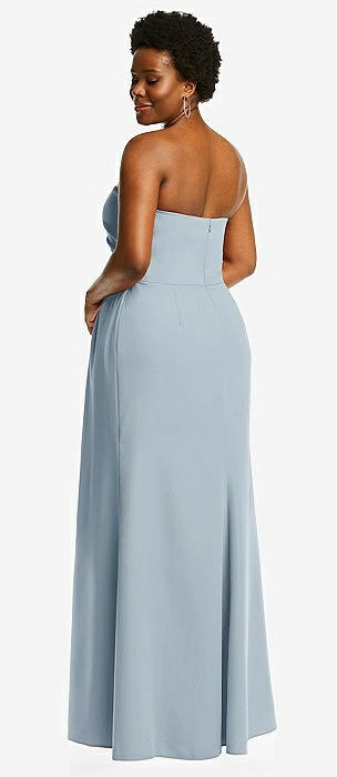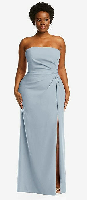 Strapless Pleated Faux Wrap Trumpet Gown with Front Slit in mist