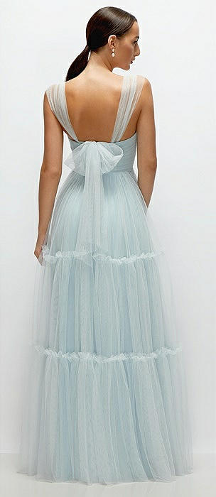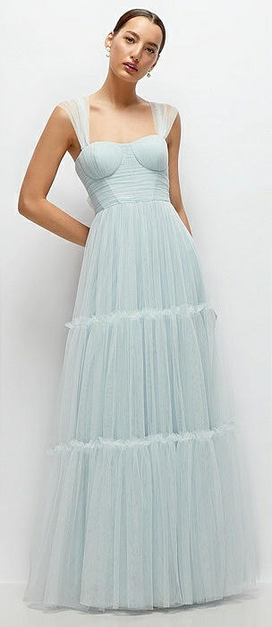 Bustier-Style Neu Tulle Tiered Maxi Dress with Convertible Straps in mist