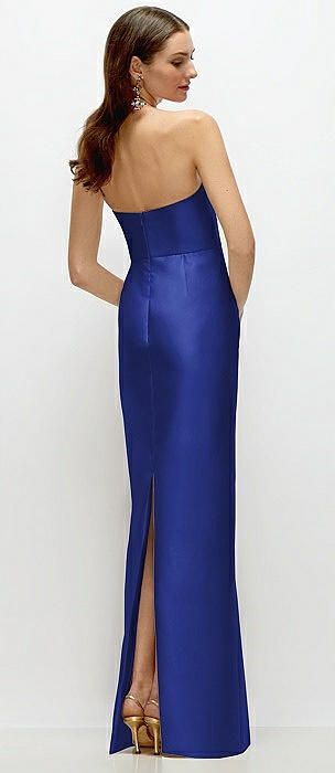 Strapless Satin Column Dress with Back Slit in cobalt blue
