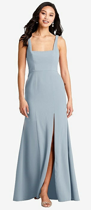 Notch Crepe Trumpet Gown with Front Slit in larkspur blue