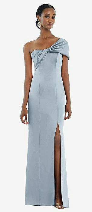 Twist Cuff One-Shoulder Princess Line Trumpet Gown in mist