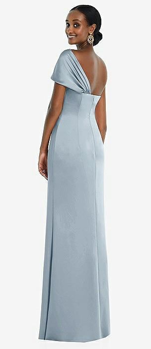 Draped Satin Grecian Column Gown with Convertible Straps in sky blue