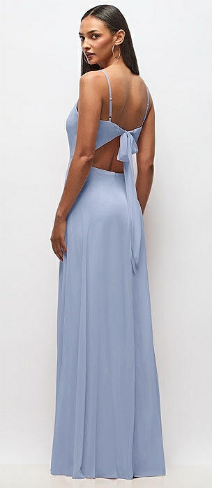 Tie-Back Cutout Maxi Dress with Front Slit in sky blue