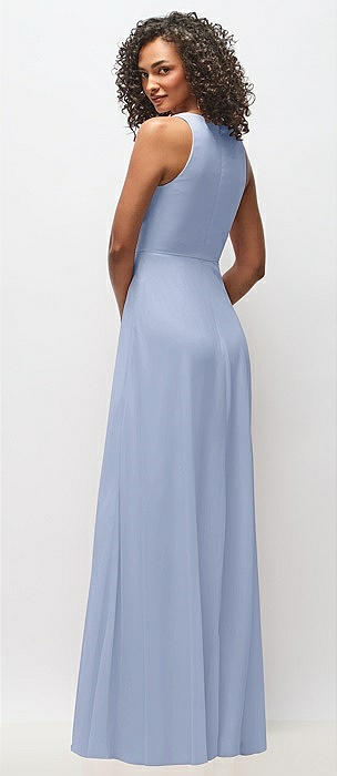 Sleeveless V-Neck Chiffon Wrap Dress in sky blue