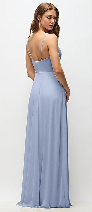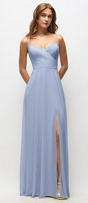 Wrap Bodice Chiffon Maxi Dress with Adjustable Spaghetti Straps in sky blue