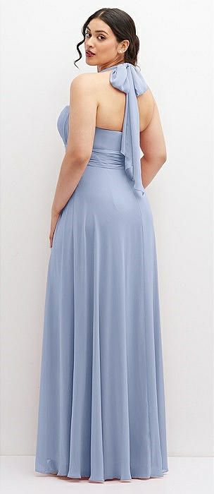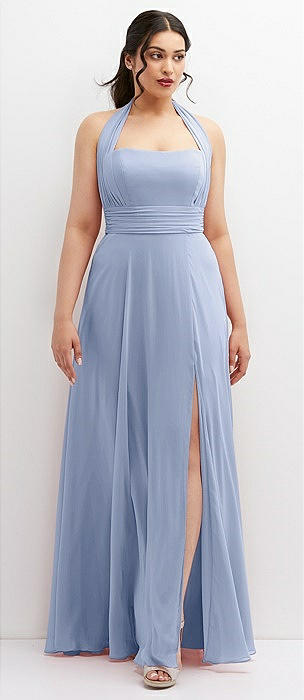 High Neck Backless Maxi Dress with Slim Belt in french blue