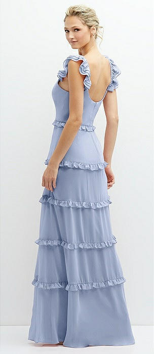 Tiered Chiffon Maxi A-line Dress with Convertible Ruffle Straps in sky blue