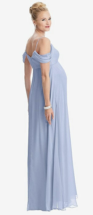 Draped Cold-Shoulder Chiffon Maternity Dress in sky blue
