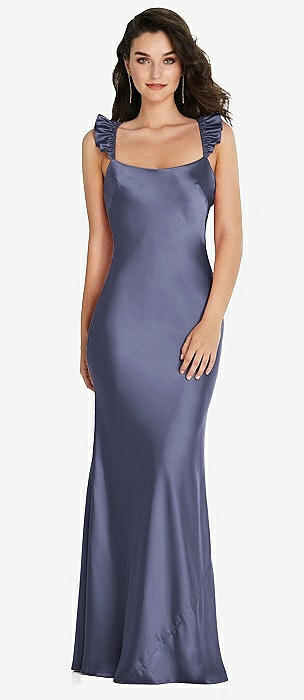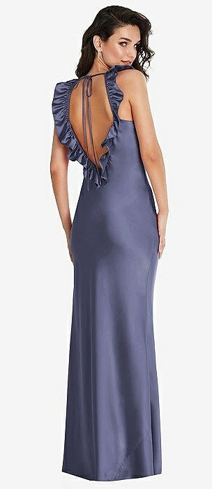 Ruffle Trimmed Open-Back Maxi Slip Dress in french blue