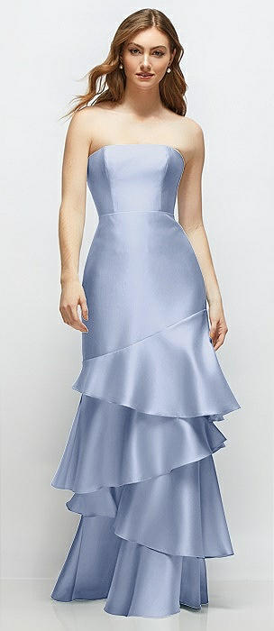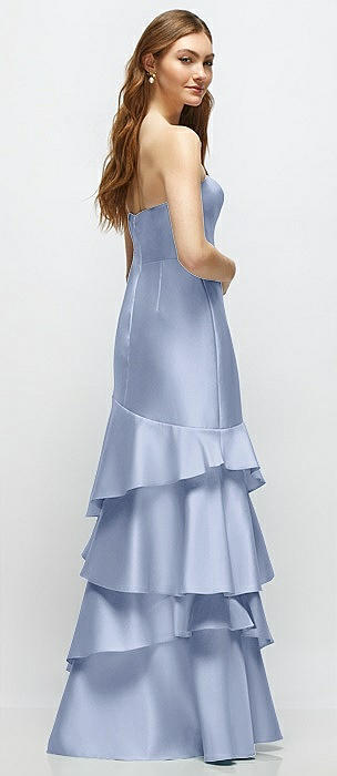 Strapless Bodycon Maxi Dress with Tiered Ruffle Skirt in sky blue