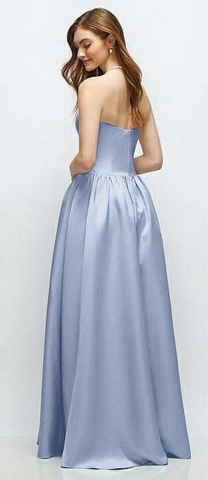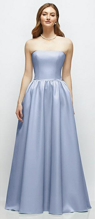 Strapless Satin Drop Waist Gown with Full Skirt in sky blue