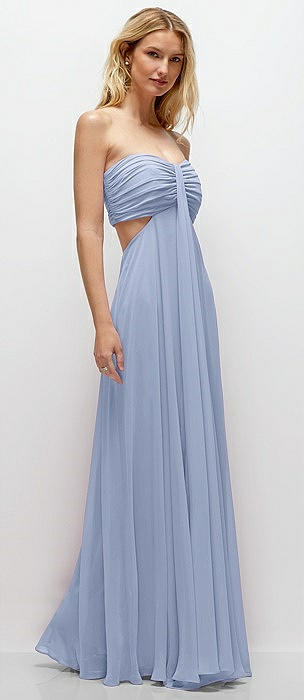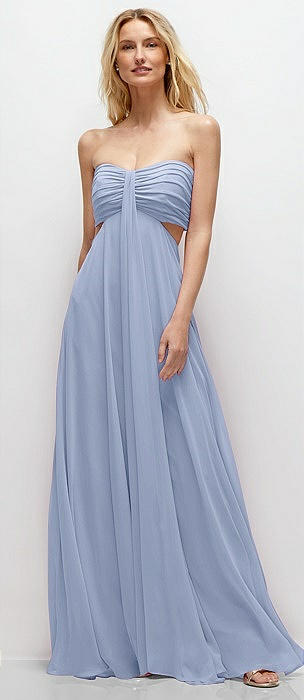 Strapless Empire Waist Cutout Maxi Dress with Covered Button Detail in sky blue