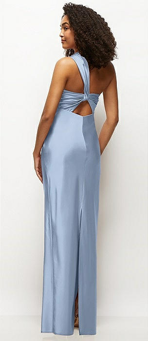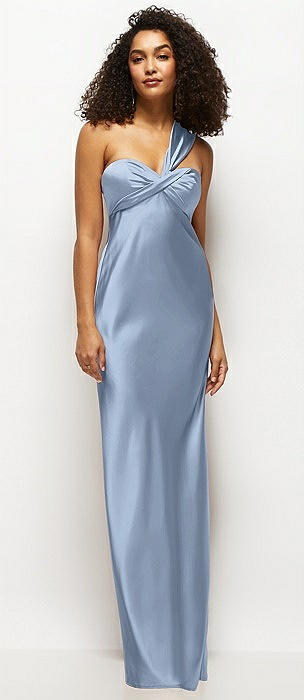 Satin Twist Bandeau One-Shoulder Bias Maxi Dress in cloudy