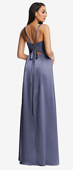 Lace Up Tie-Back Corset Maxi Dress with Front Slit in french blue