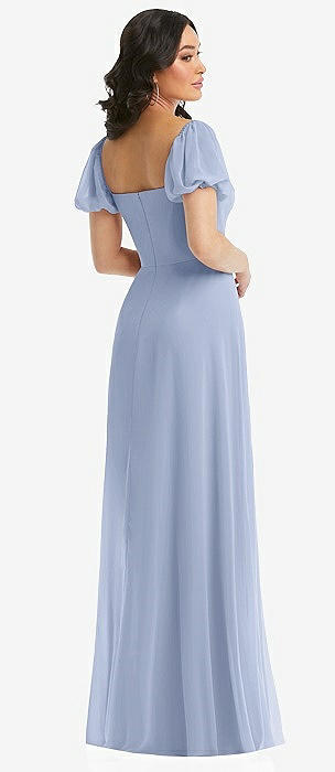 Plunge Neckline Bow Shoulder Empire Waist Chiffon Maxi Dress in sky blue