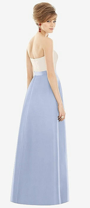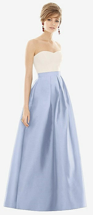 Strapless Pleated Skirt Maxi Dress with Pockets in sky blue