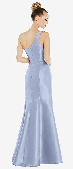 Bow One-Shoulder Satin Trumpet Gown in sky blue