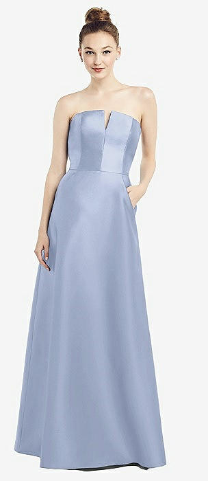 Blue Alfred Sung V-Neck Bridesmaid Dresses