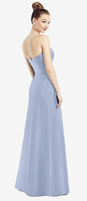 Strapless Asymmetrical Draped Satin Column Maxi Dress in mist
