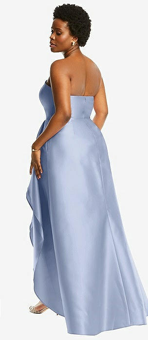 Strapless Satin Gown with Draped Front Slit and Pockets in sky blue
