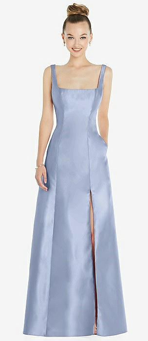 Sleeveless Square-Neck Princess Line Gown with Pockets in sky blue