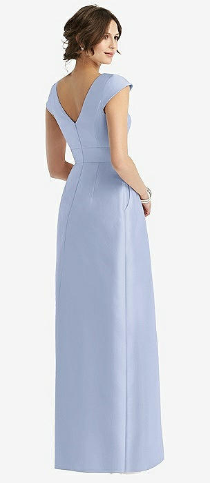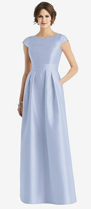 Blue Alfred Sung Cap Sleeve Bridesmaid Dresses