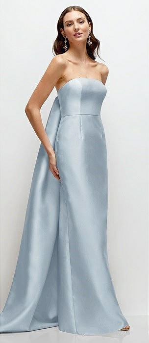 Strapless Satin Column Dress with Removeable Watteau Train in mist