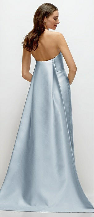 Strapless Notch Satin Gown with Pockets in sky blue