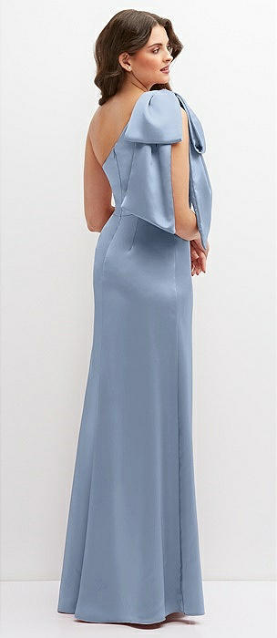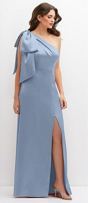 One-Shoulder Satin Maxi Dress with Chic Oversized Shoulder Bow