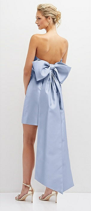 Strapless Satin Column Mini Dress with Oversized Bow in sky blue