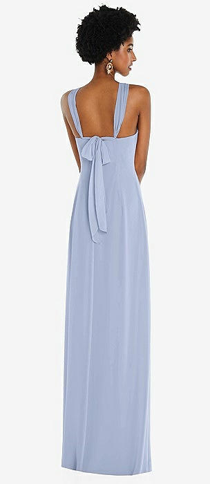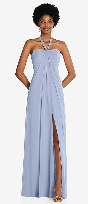 Draped Chiffon Grecian Column Gown with Convertible Straps in sky blue