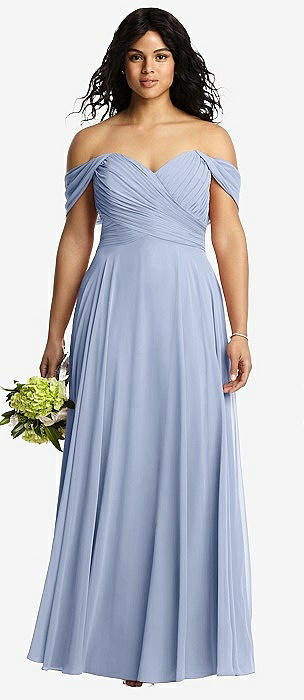 Blue Dessy Off-The-Shoulder Bridesmaid Dresses