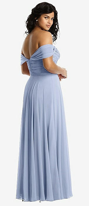 Off-the-Shoulder Draped Chiffon Maxi Dress in sky blue
