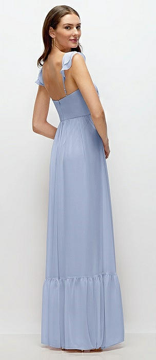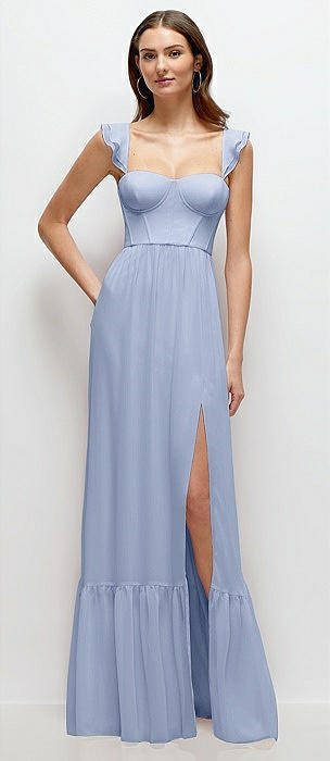 Ruffle Strap Chiffon Bustier Maxi Dress with Ruffle Hem A-Line Skirt