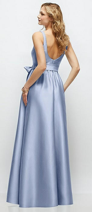 Square-Neck Satin Maxi Dress with Full Skirt in sky blue