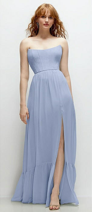 Strapless Cat-Eye Corset Maxi Dress with Ruffle Hem A-Line Skirt in sky blue