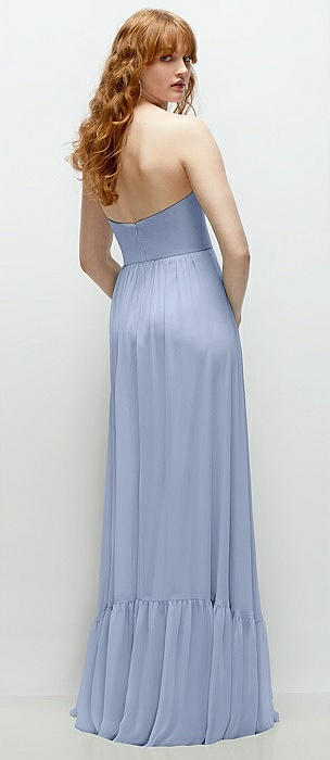 Ruffle Strap Chiffon Bustier Maxi Dress with Ruffle Hem A-Line Skirt in sky blue